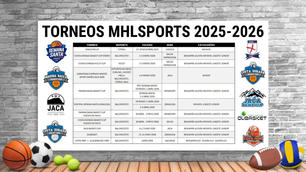 La llegada de la Semana Santa volverá a ser sinónimo de baloncesto. Benidorm acogerá una nueva edición de la Marina Baixa Basket Cup Semana Santa (29 marzo-1 abril 2026), mientras que Zaragoza celebrará la XVIII MHL Semana Santa (29 marzo-1 abril 2026 y 2-5 abril 2026), el torneo más emblemático e importante del calendario nacional, con la participación de los mejores equipos de categorías infantil, cadete y júnior y una cada vez mayor presencia de equipos internacionales.
